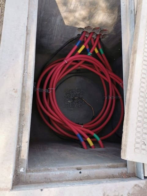 • Cableado de cable solar de trackers a CB por tubería pead. En diversas